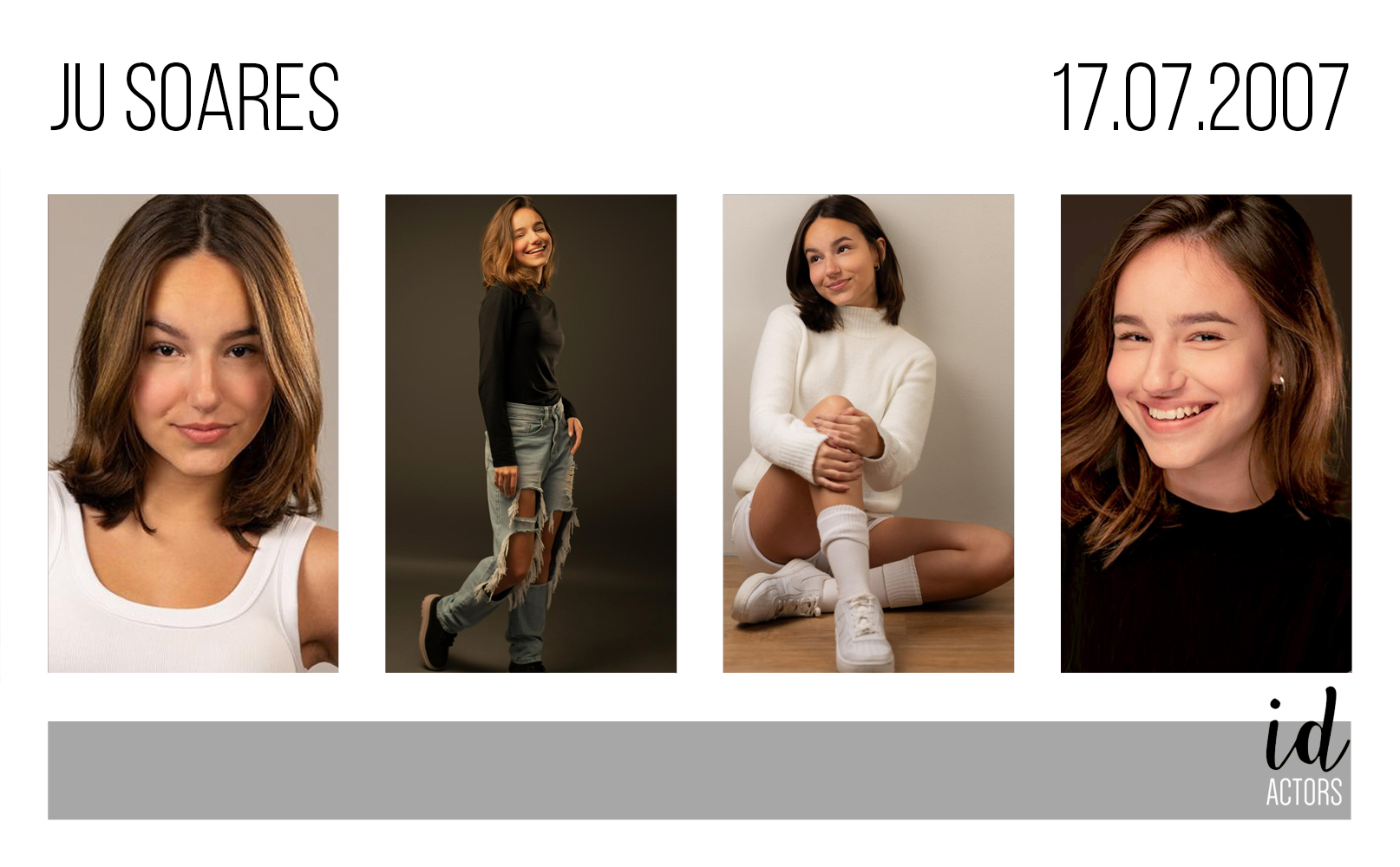 Atriz, modelo e bailarina nascida em Porto Alegre que mora atualmente em Montenegro. Desde 2016, realizou cursos de interpretação para teatro, TV e cinema em instituições como Casa de Teatro de Porto Alegre, Take 04, Cômica Cultural e Oficina Adolescer. Integrou por três anos o elenco do espetáculo “Adolescer”, realizando mais de 80 apresentações em Porto Alegre e outros estados com a peça. Seu trabalho mais recente no audiovisual é “Coligay”, produção que estreia em 2026 nos cinemas e no Canal Brasil. Outro destaque recente é o longa “E Filhos” (2025), em que foi protagonista, lançado no cinema e selecionado para o Festival Cine Curta POA. Como modelo, participou de diversas campanhas publicitárias, entre elas para Itaú, Tang, Snowland e Governo do Estado RS. Em Montenegro, ministrou oficinas de expressão corporal para adolescentes, dirigiu a peça “A Noiva-Cadáver” e realizou trabalhos de palhaçaria em hospital. Fluente em inglês, possui disponibilidade para viajar e mudar de cidade.